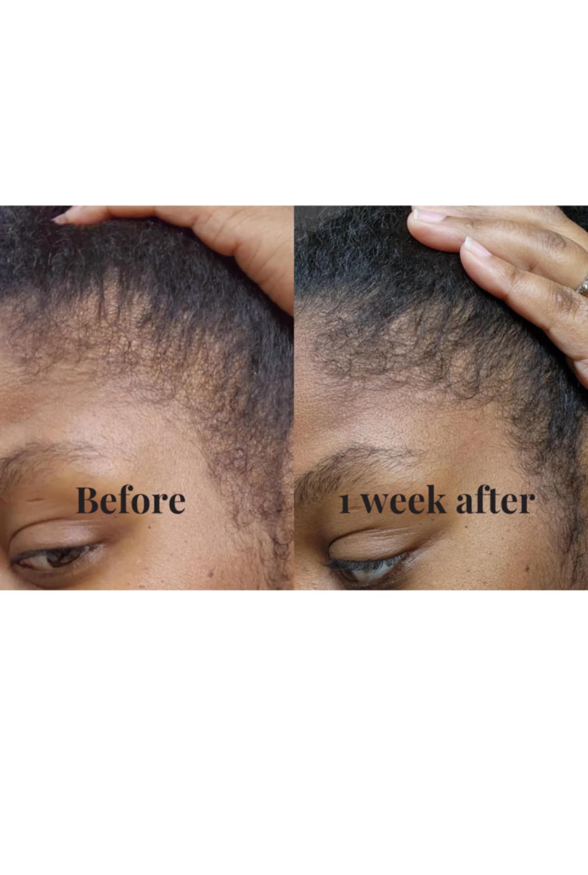 ''This is only 1 week of using the scalp repair oil and my post partum edges are growing back!!!!''